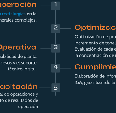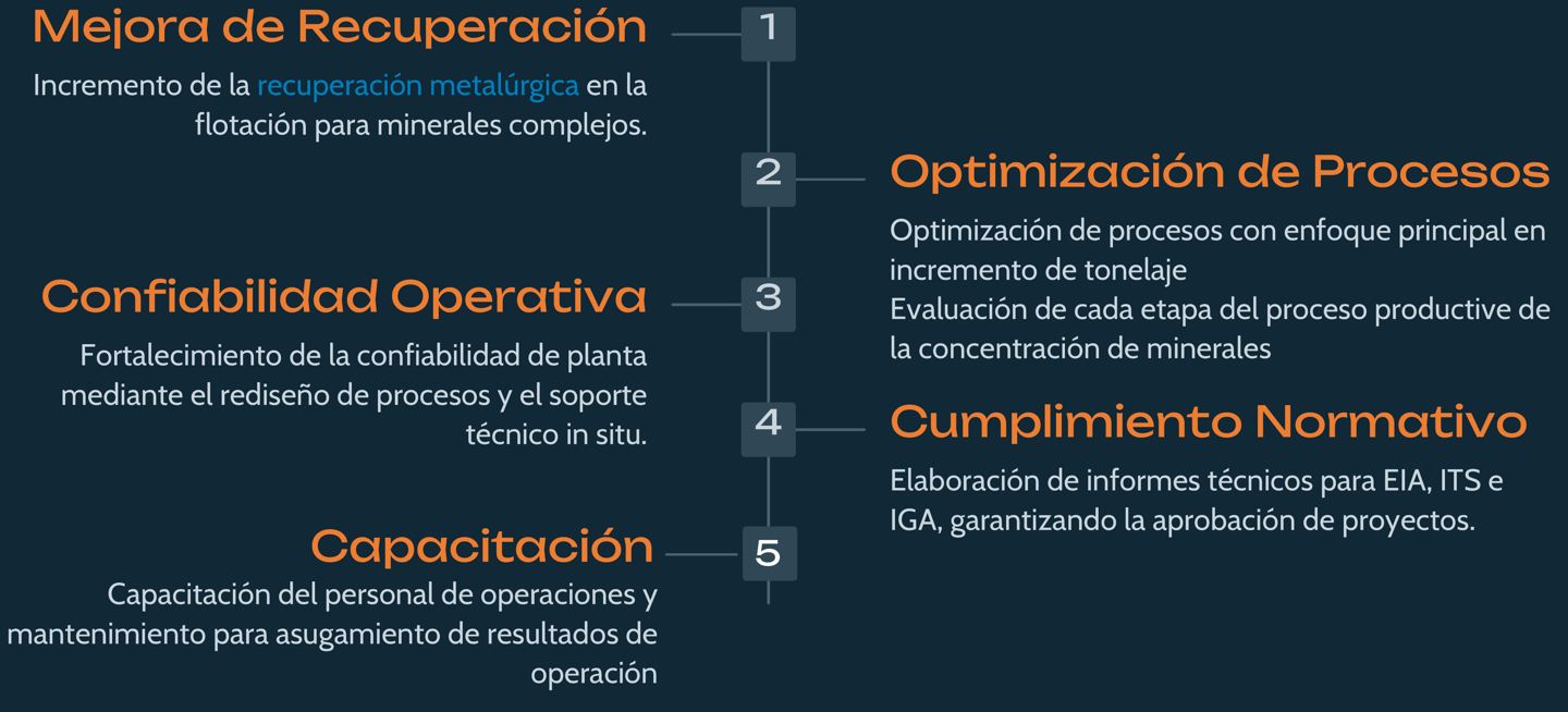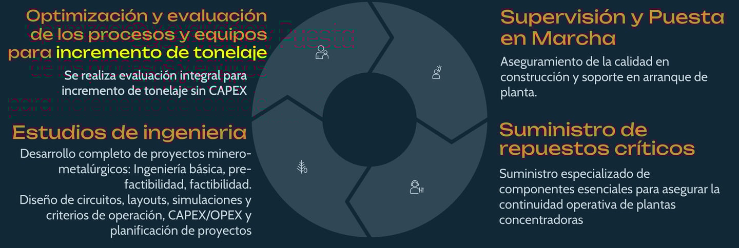 Desarrollo de proyectos de mejora minero-metalúrgicos y consultoría técnica avanzada.
